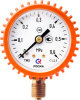 Газовый (сварочный) манометр серии ТМ-210 отечественного производства ЗАО «РОСМА» используется для измерения и контроля давления газа в замкнутой системе с максимальной рабочей температурой до 120°C. Его запрещается использовать в работе с агрессивными, вязкими и кристаллизующимися рабочими средами. Применяется в баллонных редукторах и регуляторах. Прибор имеет диаметр корпуса 50 мм, радиальное исполнение (штуцер снизу), класс точности 2,5 и степень защиты IP40. Корпус газового манометра от РОСМА имеет цветовую индикацию в зависимости от измеряемой среды: кислородный (О2) манометр – голубой корпус; ацетиленовый (С2Н2) манометр – серый корпус; пропановый (С3Н8) манометр – красный корпус; манометр для других  газов – черный корпус. Манометр рекомендуется заказывать с защитным кожухом как на фото (это доп. опция).