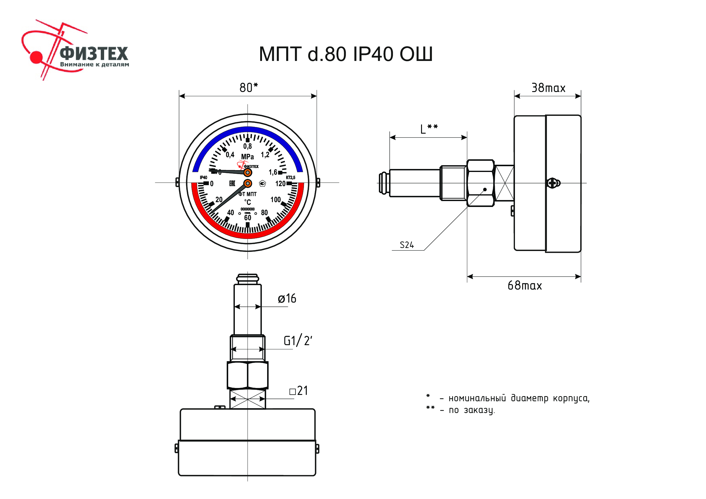 Термоманометр предназначен для одновременного измерения температуры и избыточного давления неагрессивных к медным сплавам сред.